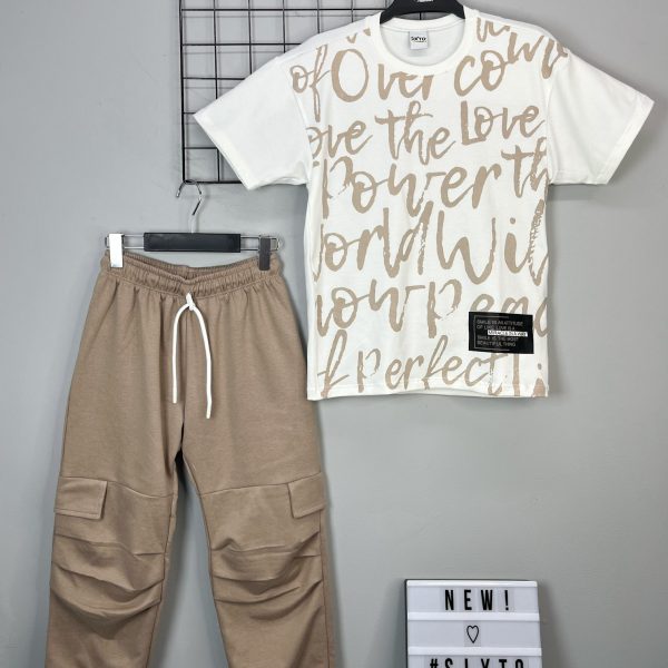 Conjunto para niña camiseta manga corta y jogger color caqui